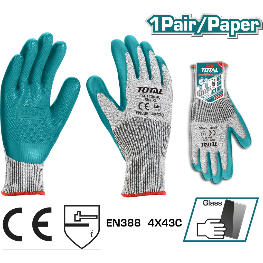 (1 Par) Guantes Resistentes A Cortes Y Abrasiones. Medida 10 (XL). Capa De Látex En La Palma Y HPP