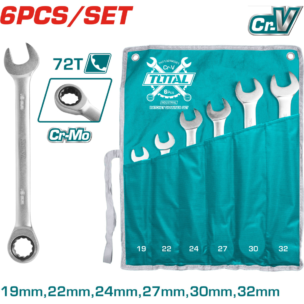 Juego 6pza llaves de combinacion rachet para tuercas 19,22,24,27,30,32mm. Cr-Mo72