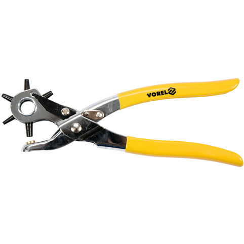 Vorel Abre Hueco De Correa. Longitud: 220 Mm, Tamaños De Agujeros: 2.5, 3, 3.5, 4, 4.5, 5 Mm, Superficie: Mango Con Revestimiento De Goma, Herramienta De Perforacion Y De Colocacion De Ojales Forjada, Cuenta Con Punzones Intercambiables Abre Hueco De C
