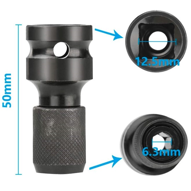 Adaptador de llave hexagonal de ½” a ¼”, color negro