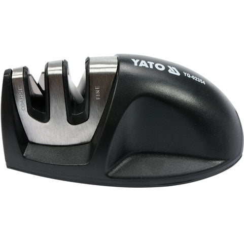 Afilador De Cuchillos 2 En 1. Amolador De Dos Funciones Para Cuchillos De Metal Y Ceramica. Tiene Dos Ranuras. Material De Los Discos (Cuchillas) Para Afilar: Ceramica, Acero De Tungsteno. Cuerpo De Abs, Base Antideslizante, De Color Negro.