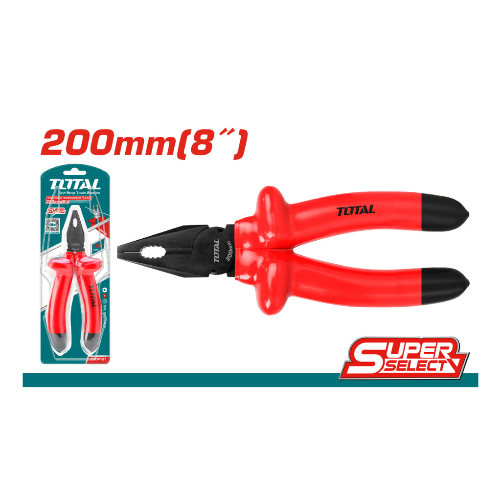 Alicate de combinacion aislado 8''/200mm Cr-V. Probados en 10,000Voltios.