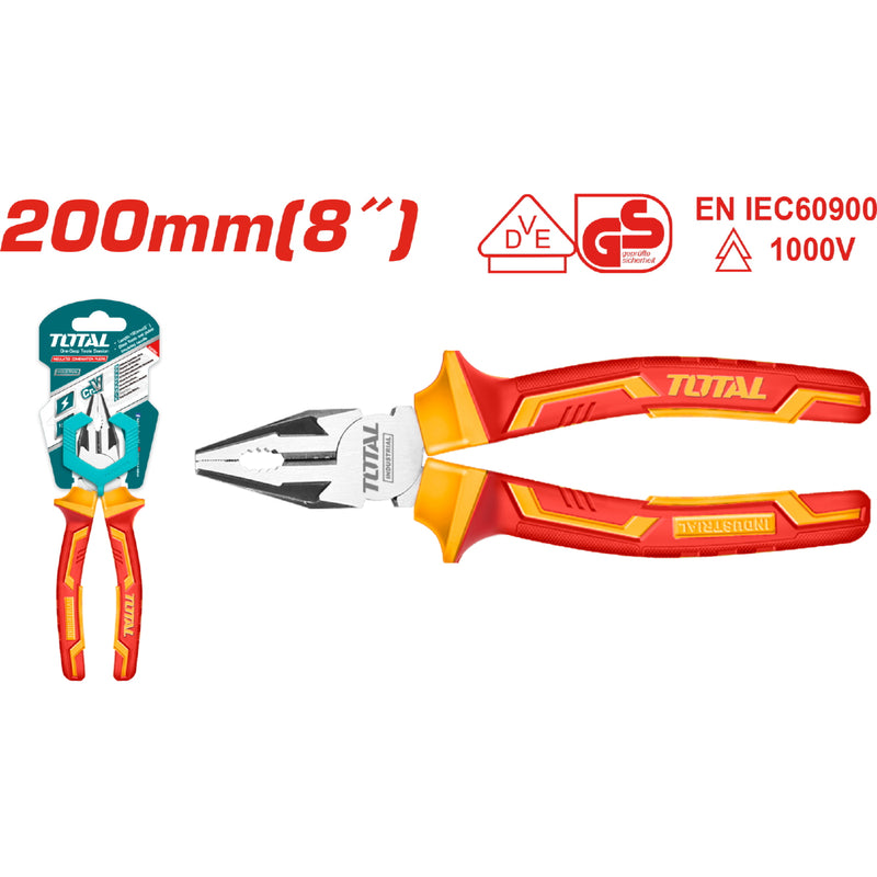 Alicate De Combinacion De 8" (200Mm) De Mango Aislado. Acabado Negro Pulido.Soporta 1000 V.