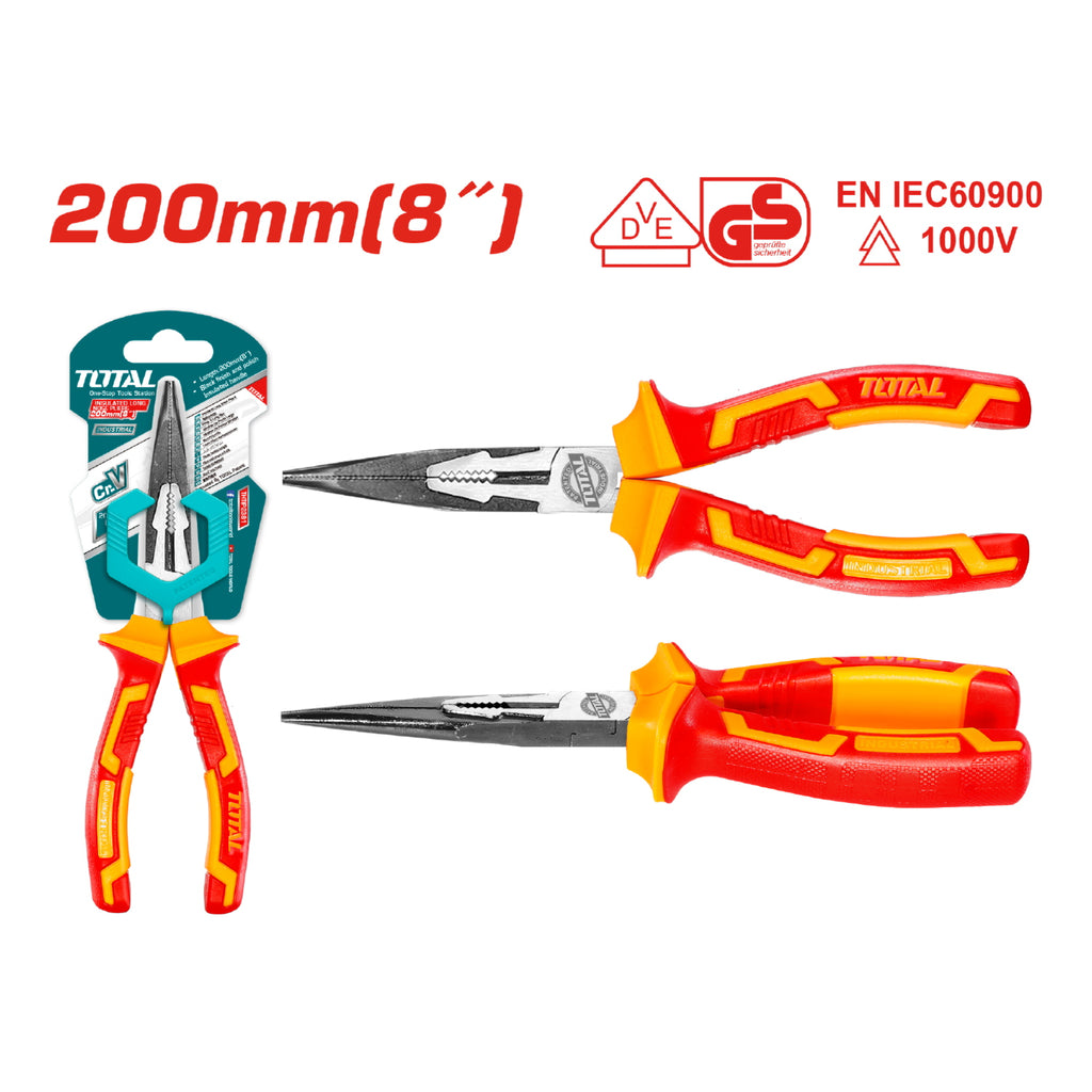 Alicate de Punta Larga de 8'' (200mm) de Mango aislado. Acabado Negro Pulido. Soporta 1000 V.