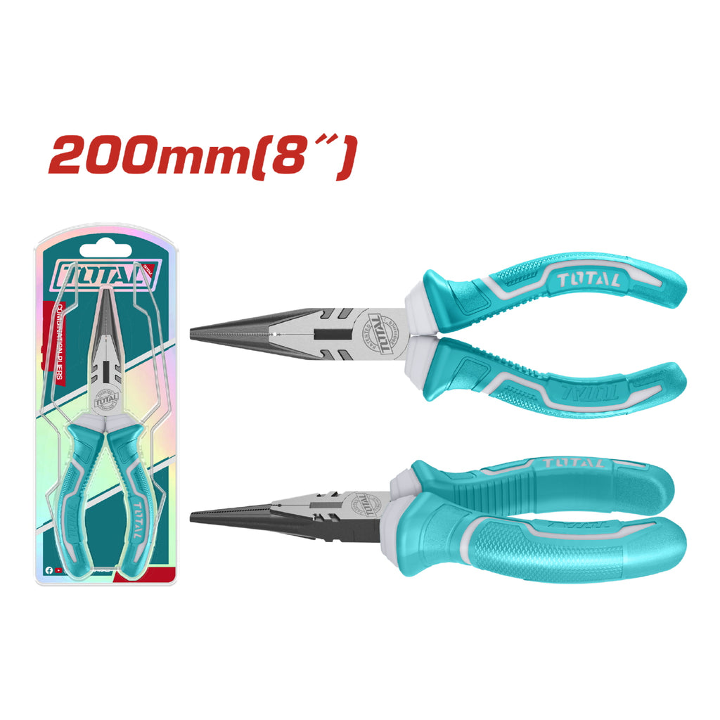 Alicates De Punta Larga 8" Pulido Y Antióxido. Con Mango De Dos Colores.