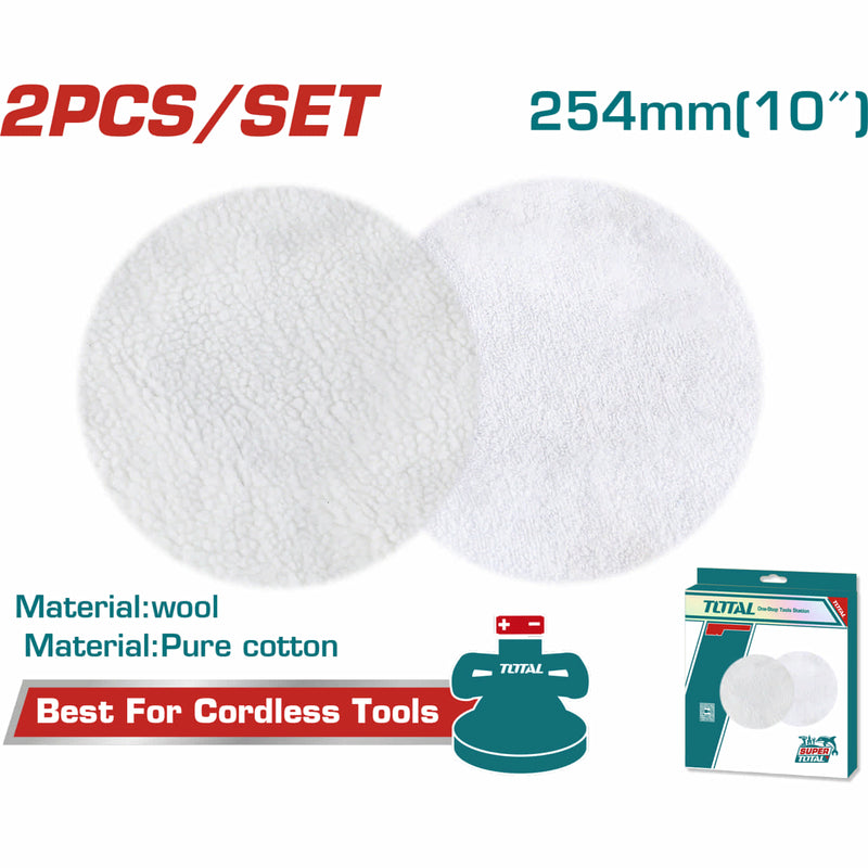 | Características | Almohadillas para pulido y limpieza de Lana y Algodón Puro 254mm Set de 2 Piezas. Adecuado para TOPLI2001. |