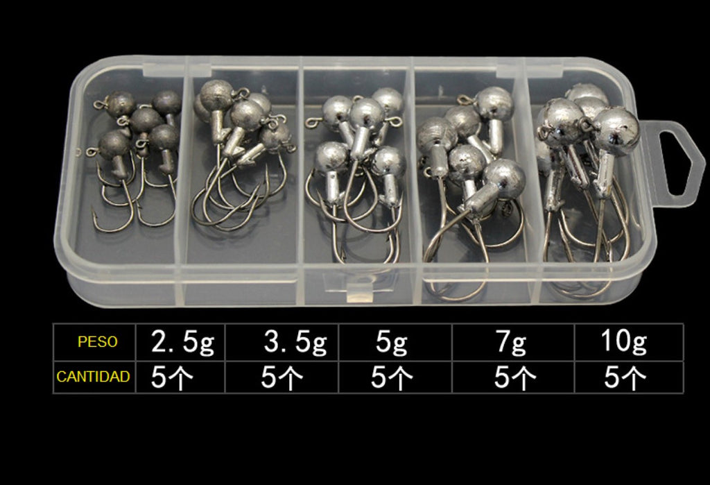 Anzuelo con plomo caja 25 Uds. 2.5g-10g