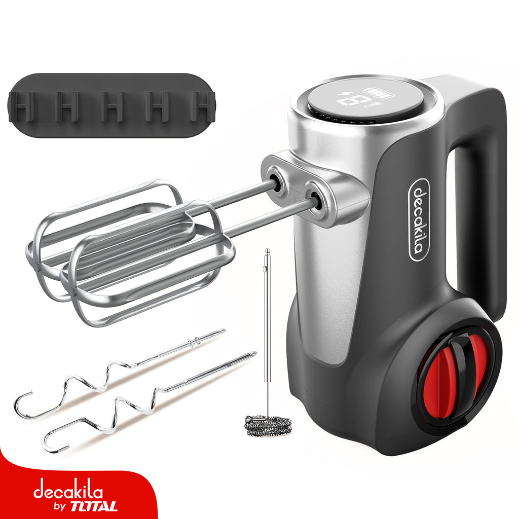 | Incluye | Ganchos para batir, espumador de leche, varillas batidoras |