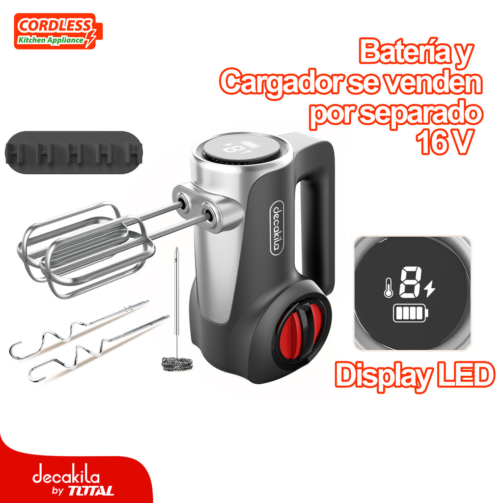 Batidora de mano inalámbrica gris 125W. 16V. 7 Velocidades. Batería y cargador por separado.