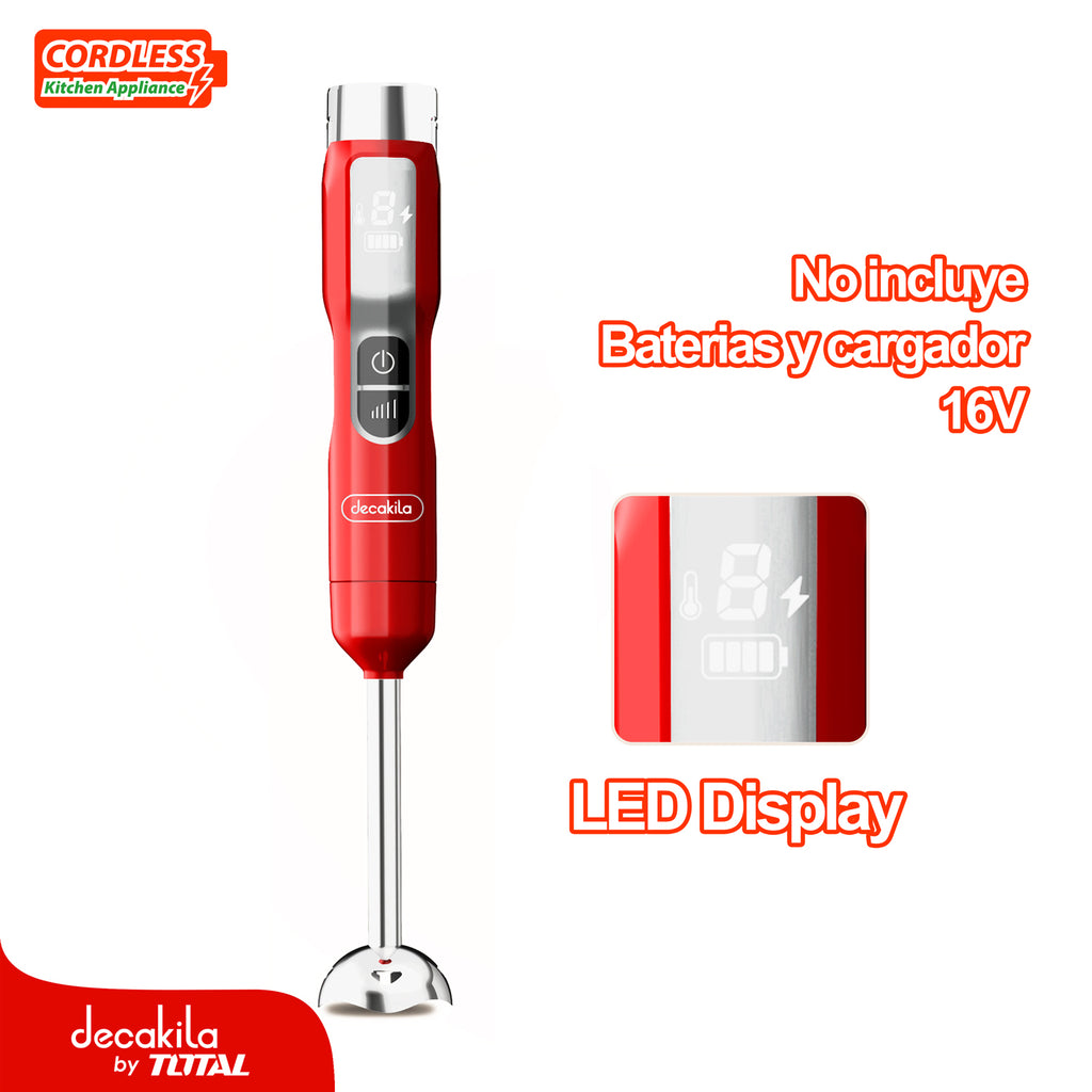 | *Nombre | Batidora De Mano Inalámbrica Roja 100W. 16V. Ideal Para Mezclas Jugo O Salsa. Batería Y Cargador Por Separado. |