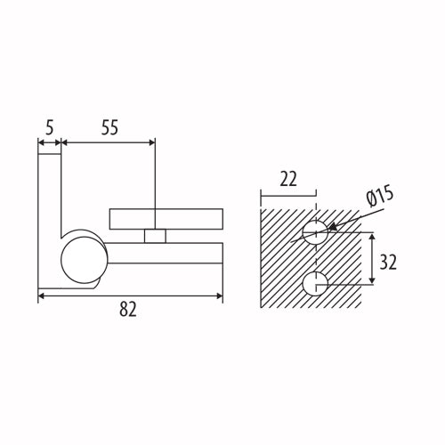 Bisagra muro-vidrio para vidrios de 6-10 mm. Acabado Brillante