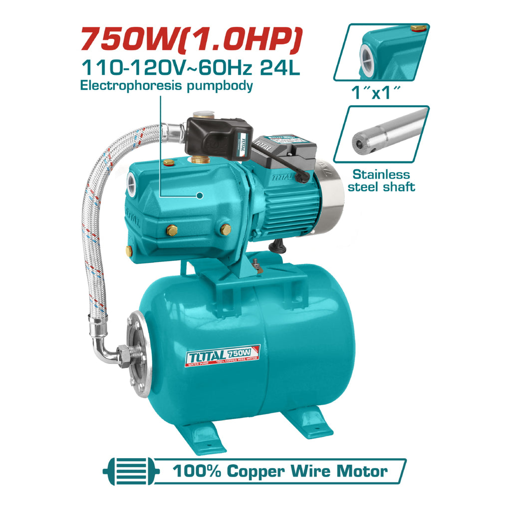Bomba De Agua Periferica Automatica 1 HP Con Tanque De Presion De 24 L 110/60Htz