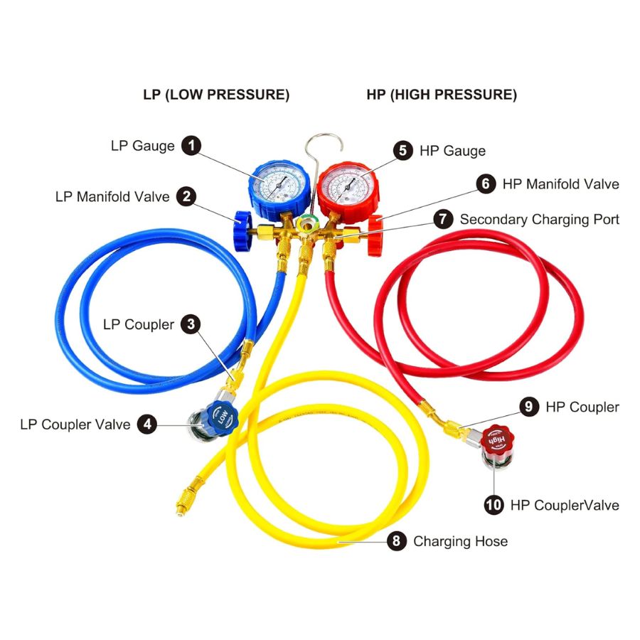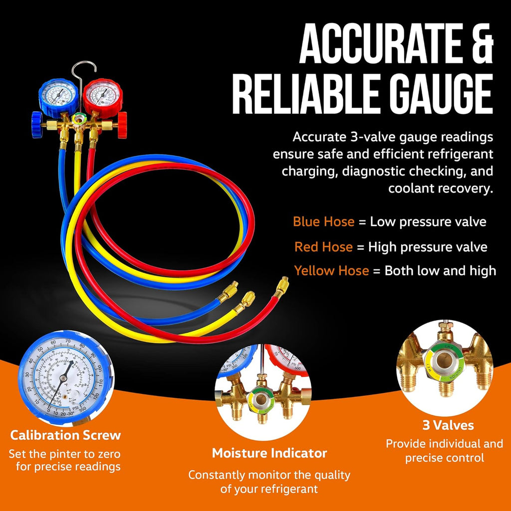 - Juego Completo: Viene con un kit de medidores de colector para el mantenimiento del aire acondicionado y una bolsa de herramientas para fácil transporte y almacenamiento.