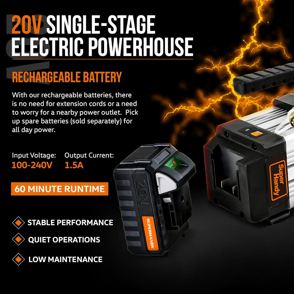 - Alto Rendimiento: Batería de litio de 20Ah proporciona 60 minutos de tiempo de trabajo continuo y una operación silenciosa.