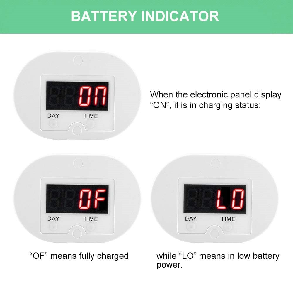 Cuenta con un indicador de batería, cuando el panel electrónico muestra ''ON'', está en estado carga; ''OF'' significa completamente cargado mientras que ''LO'' significa bajo nivel de carga.