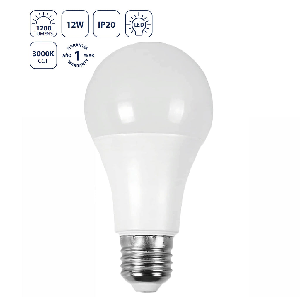 BOMBILLO A19 LED 9W 6500K (luz fría) con 6 piezas led de chip SMD 5730 con rosca gruesa E27 con cascaron color blanco con una intensidad luminica de 900 con una medida circular de 60 milimetros y 110 milimetros de largo