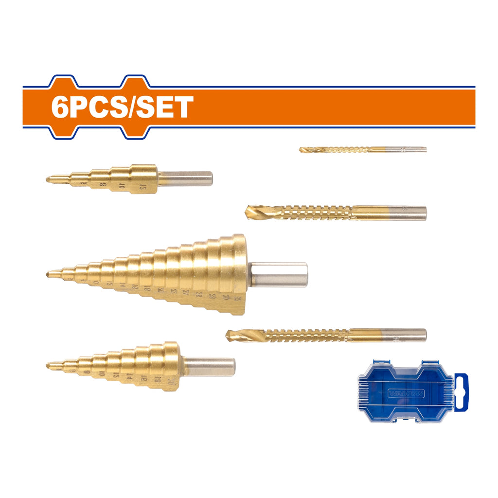 | Características | 3 piezas con brocas de sierra: 1 pieza de 4-12 mm (2 mm por paso), 1 pieza de 4-20 mm (2 mm por paso) y 1 pieza de 4-32 mm (2 mm por paso). Además, incluye brocas de sierra de 3 mm y 6 mm. |