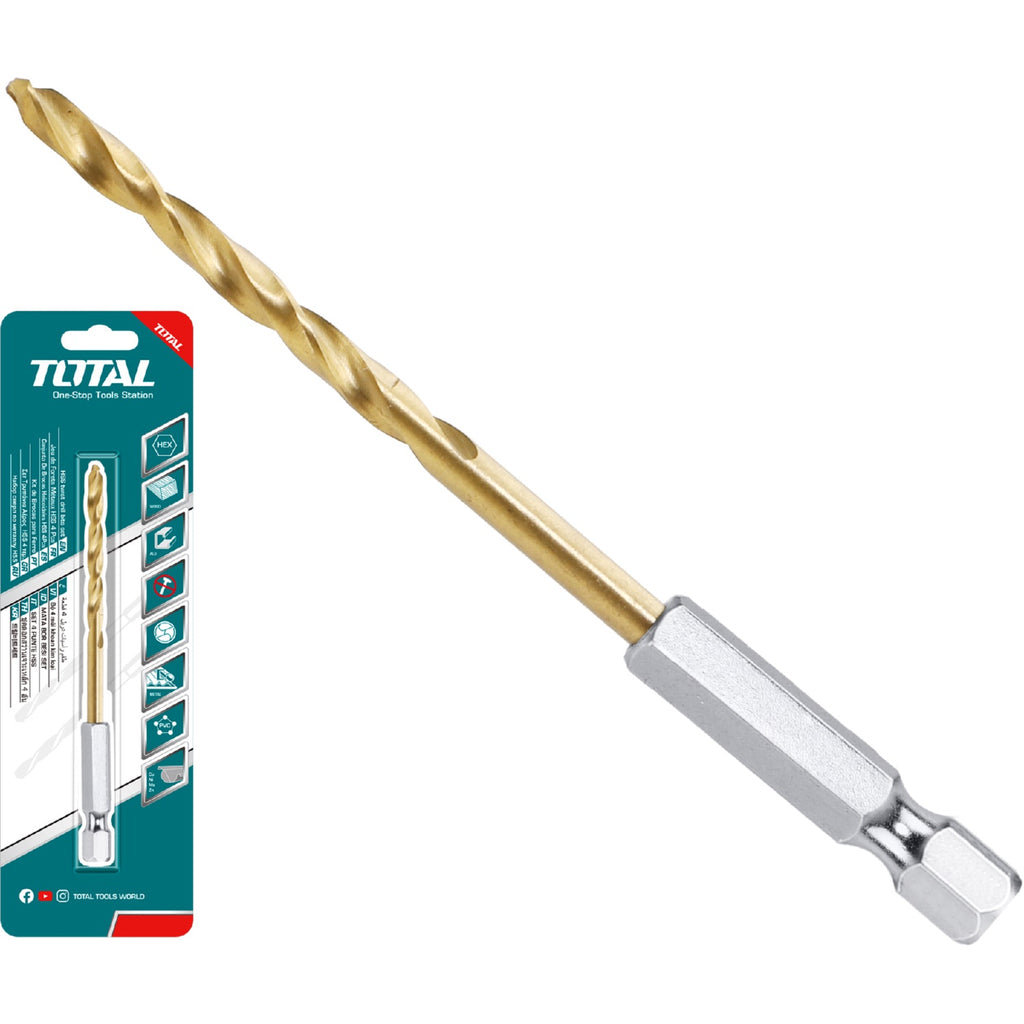 Brocas Helicoidales HSS para Metal. Vástago Hexagonal 1/4'' Acabado de Titanio.