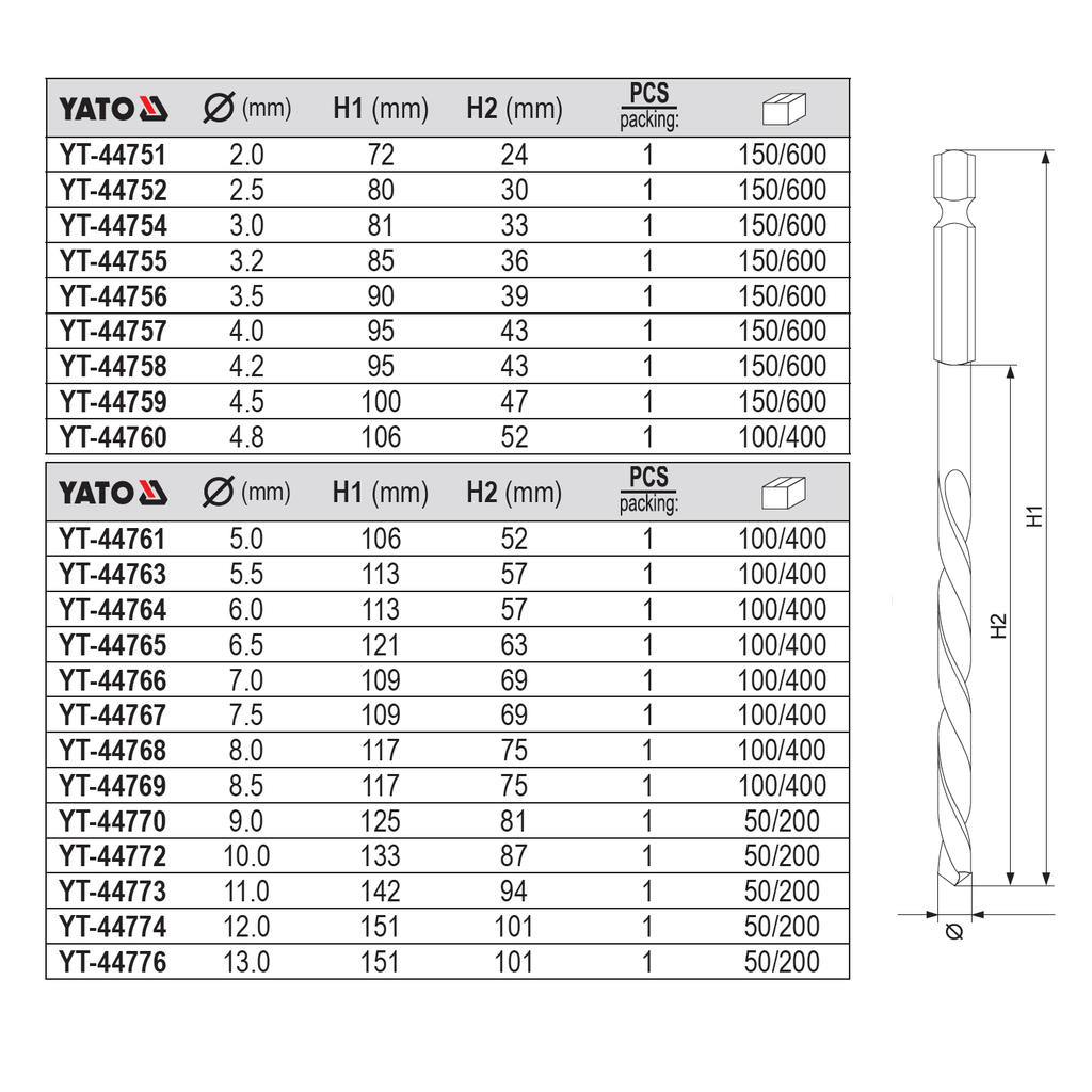 | *Nombre | Brocas para metal de titanio con vástago Hexagonal |