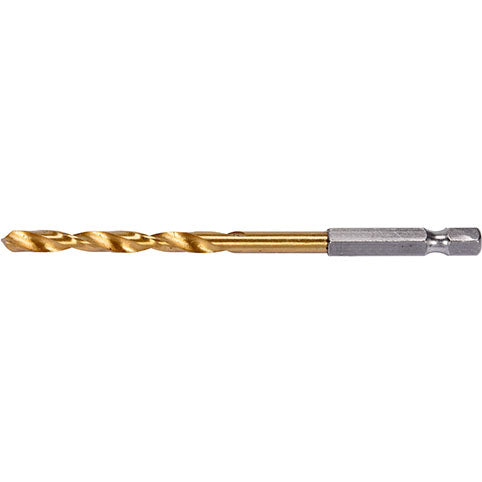 Brocas Para Metal De Titanio Con vástago Hexagonal, vástago: 1/4'' (6.3 Mm), Material: HSS 4241, Recubrimiento De Nitruro De Titanio, Completamente Rectificada, Angulo De La Punta 135°, Din 338.