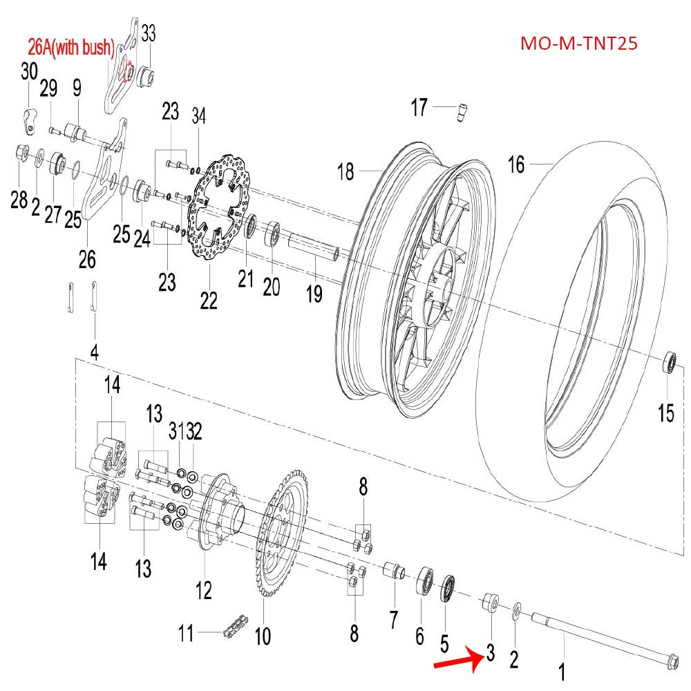 | *Nombre | Buje izquierdo de rueda trasera (LEONCINO250 / TNT25 / TRK251) |