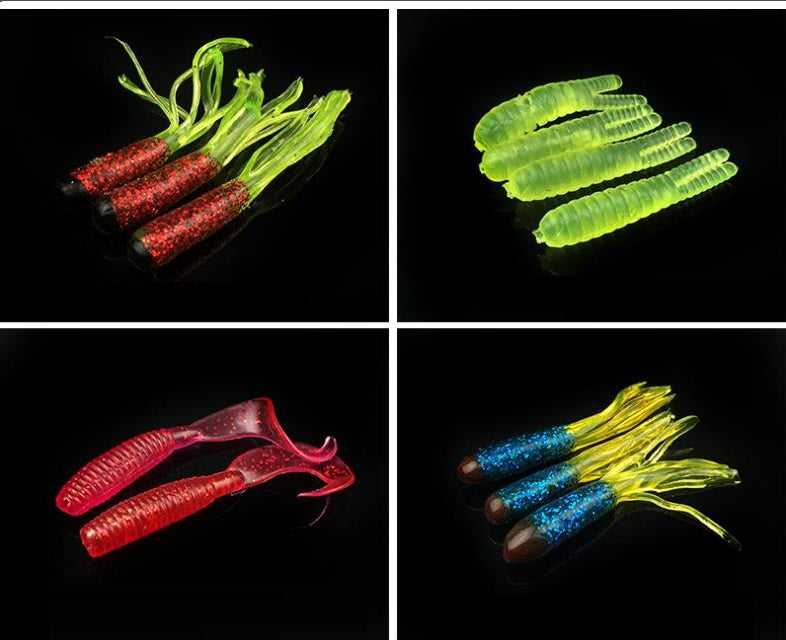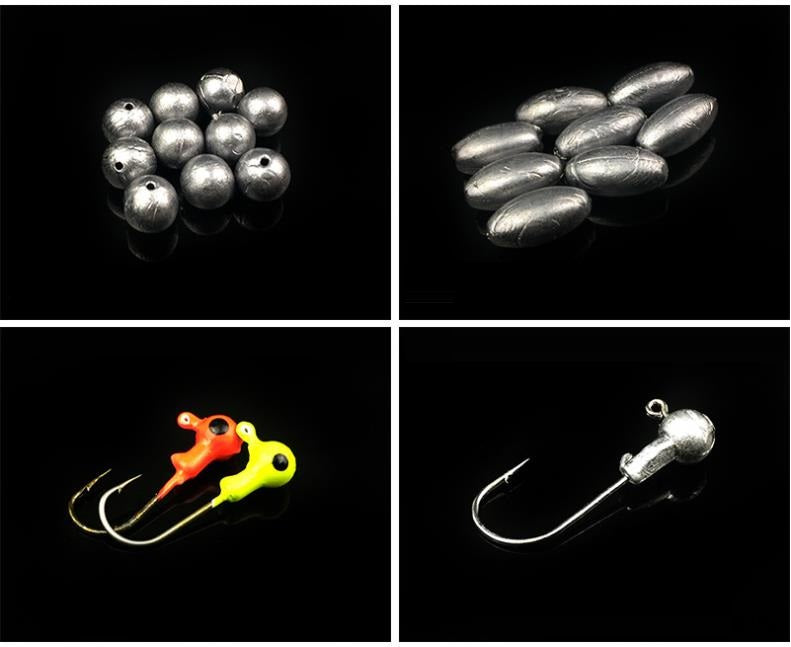 Caja Señuelos Suaves Plomos Y Anzuelos 36 Pzas