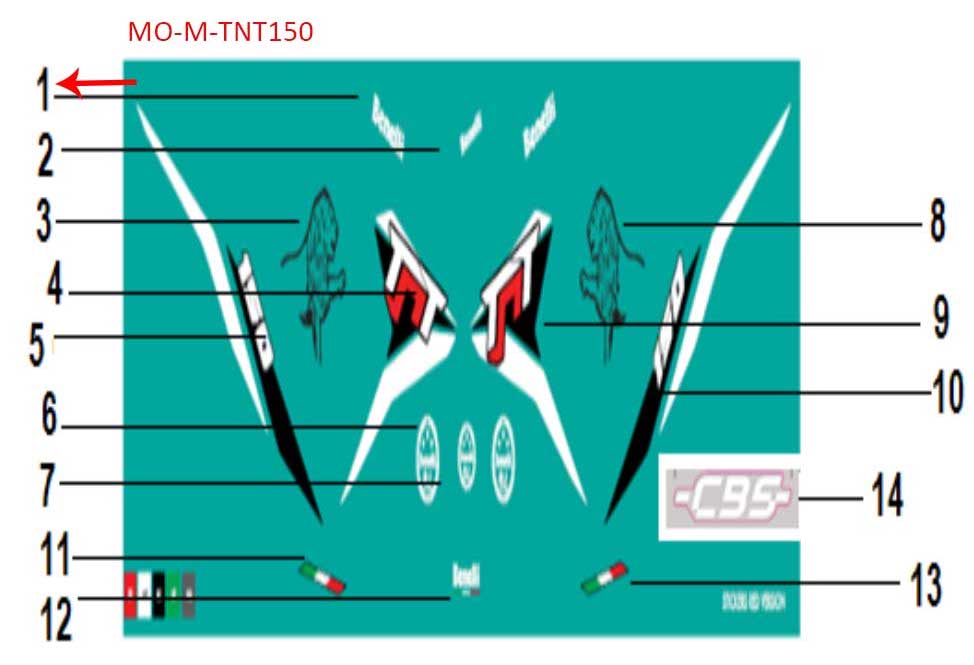 | *Nombre | Calcomania Benelli I del covertor lateral del tanque (TNT150) |