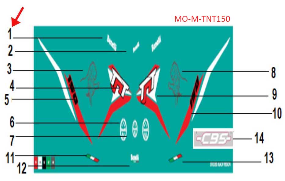 | *Nombre | Calcomania Benelli I del covertor lateral del tanque (TNT150) |