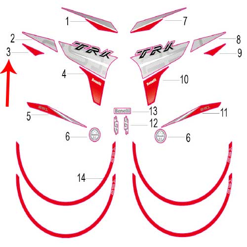 | *Nombre | Calcomania II del covertor derecho del tanque de combustible (TRK251) |