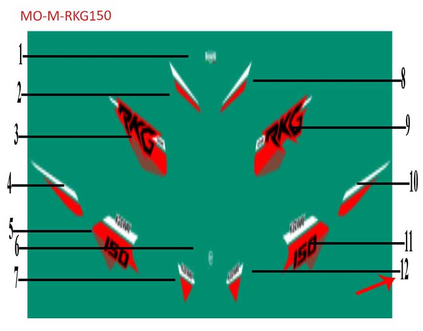 | *Nombre | Calcomania izquierda guardabarros delantero negra (RKG150) |