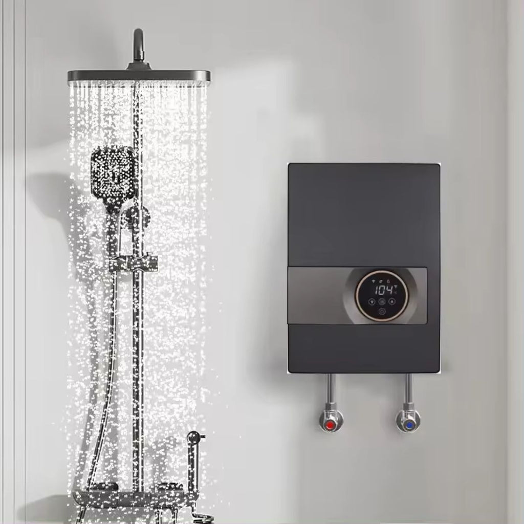- Pantalla LED panorámica muestra el estado de funcionamiento, temperatura de entrada y salida, consumo de agua y energía.