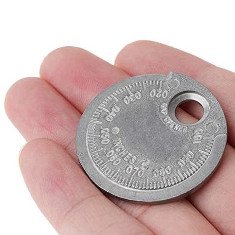 Medidor de hueco de bujía, herramienta de medición tipo moneda, rango de 0,6-2,4mm, indicador de bujía.