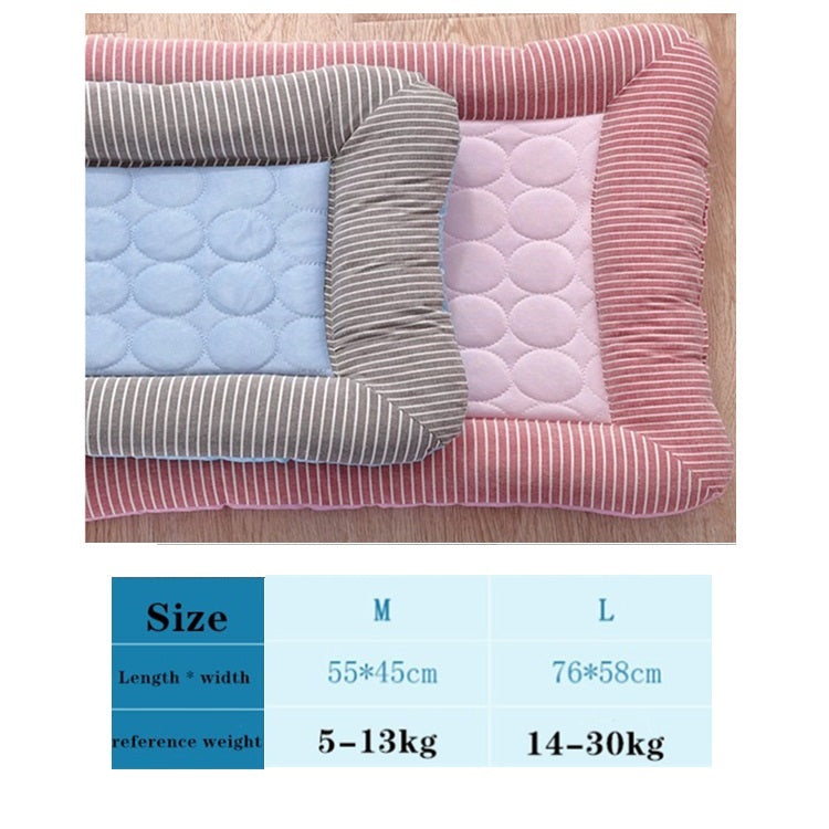 - Tela de seda de hielo, la tela crea un contacto fresco con la piel y transpirable para la circulación del aire, dando a la mascota un ambiente de sueño fresco y saludable.