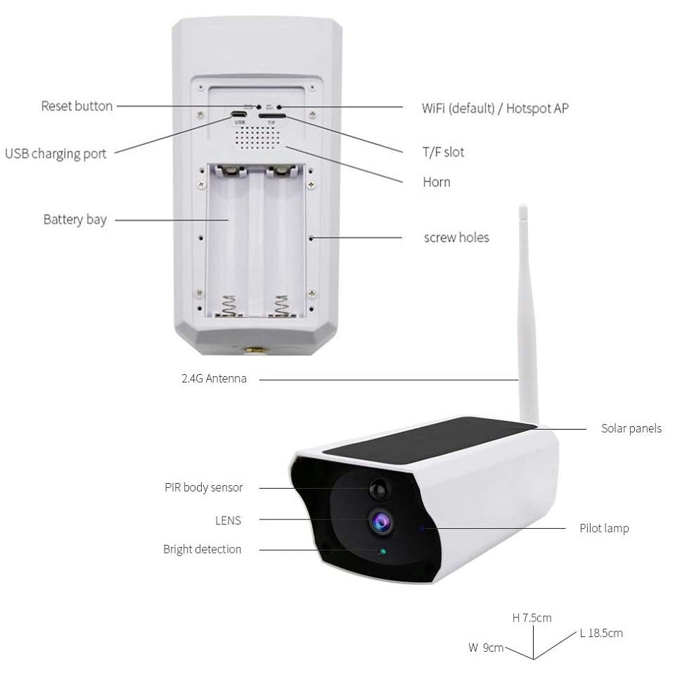 | *Nombre | Cámara de seguridad con carga de Panel Solar, con Wifi 1080 HD y audio. |