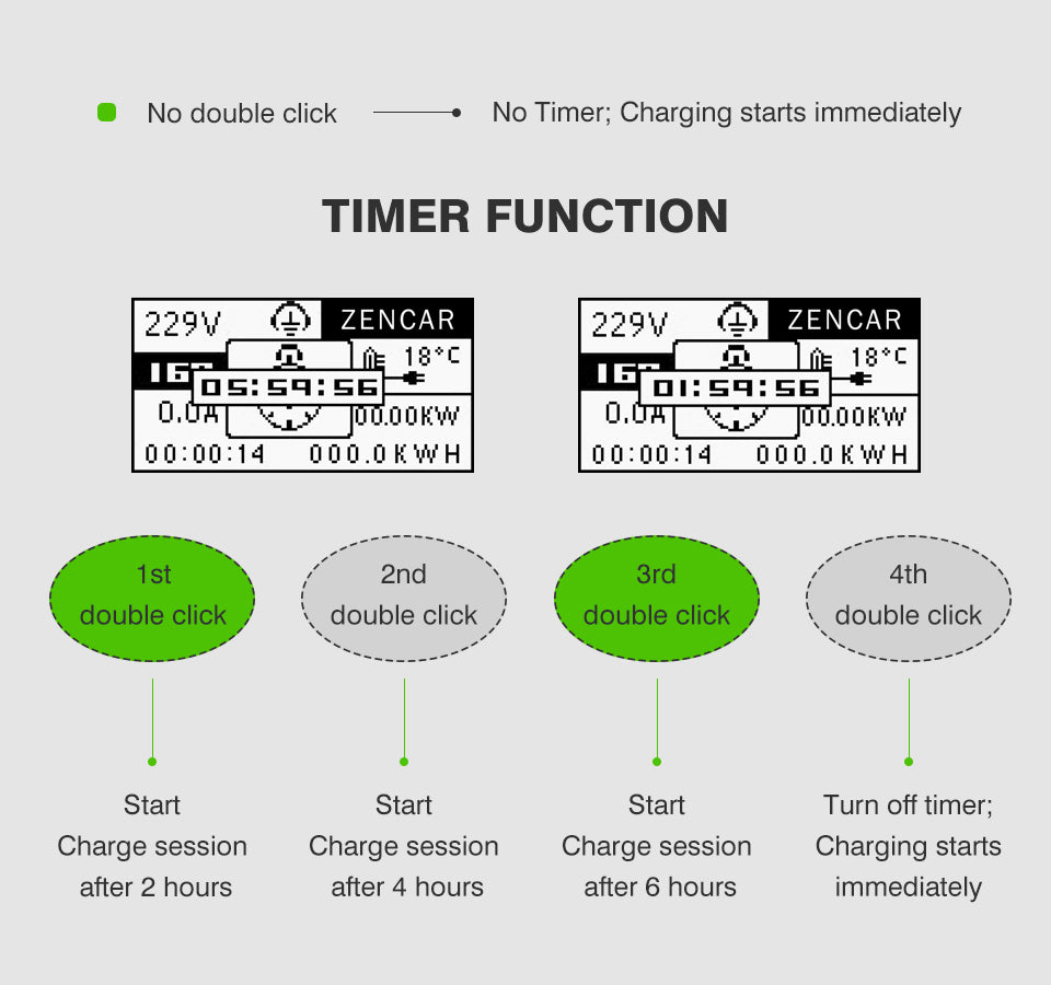 Funcion de timer: Para programar la carga durante la noche donde la tarifa electrica es mas baja: demora el inicio de carga por 2, 4 o 6 horas segun lo programes