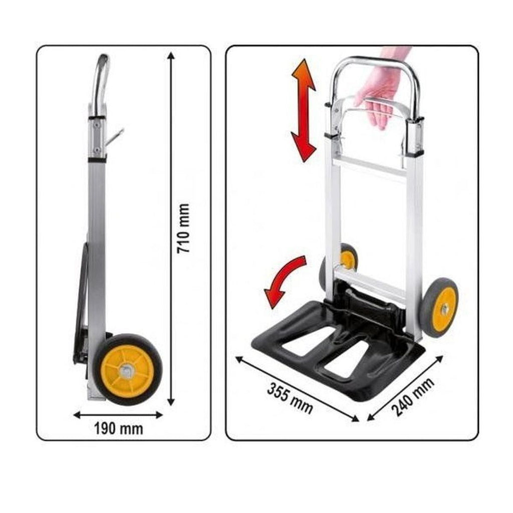 | Características | Mango telescopico, Rueda 150 mm. Diseño compacto y plataforma plegable.Gracias a esto es muy fácil de guardar o transportar, cabe en el maletero de cualquier coche sin ningún problema. |