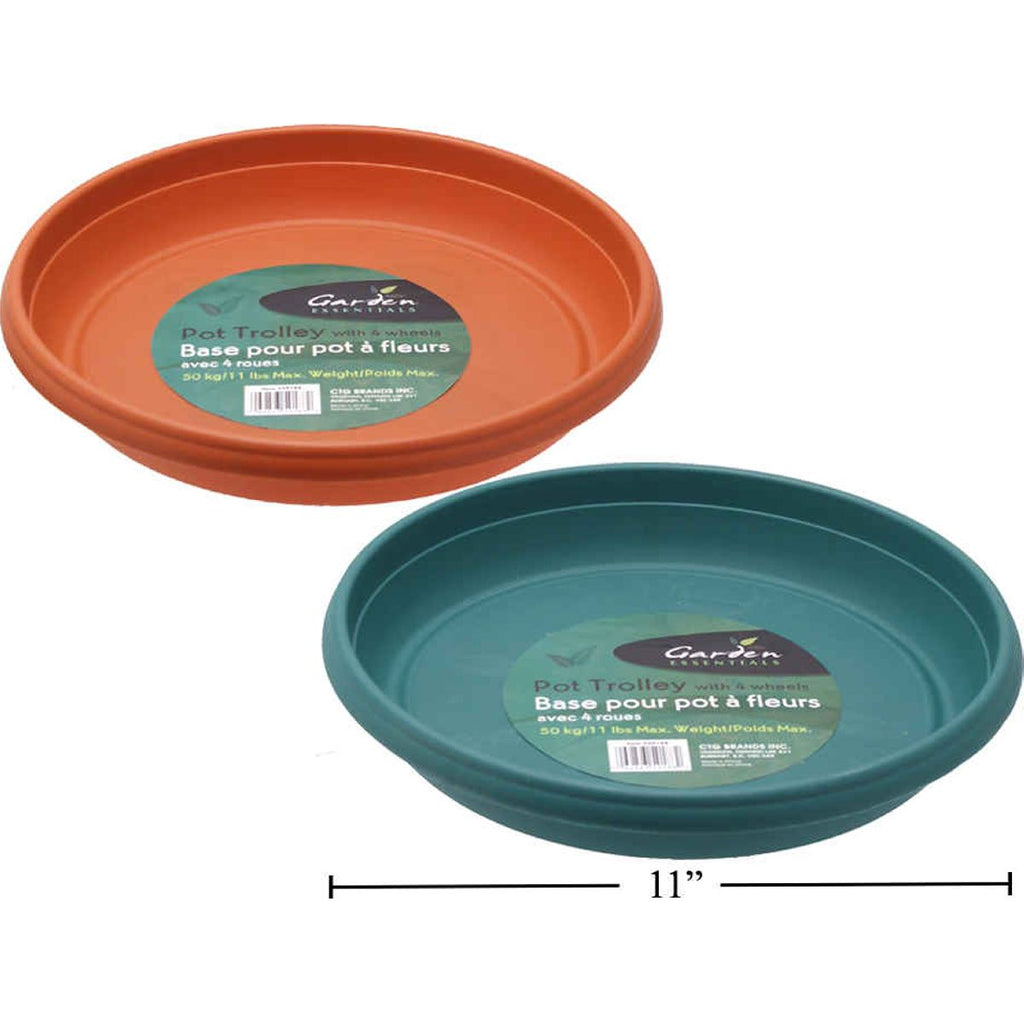 Carrito plástico macetas con 4 ruedas 11 ''''diám x 2,3'''' alto (1pza) (colores variados al azar)