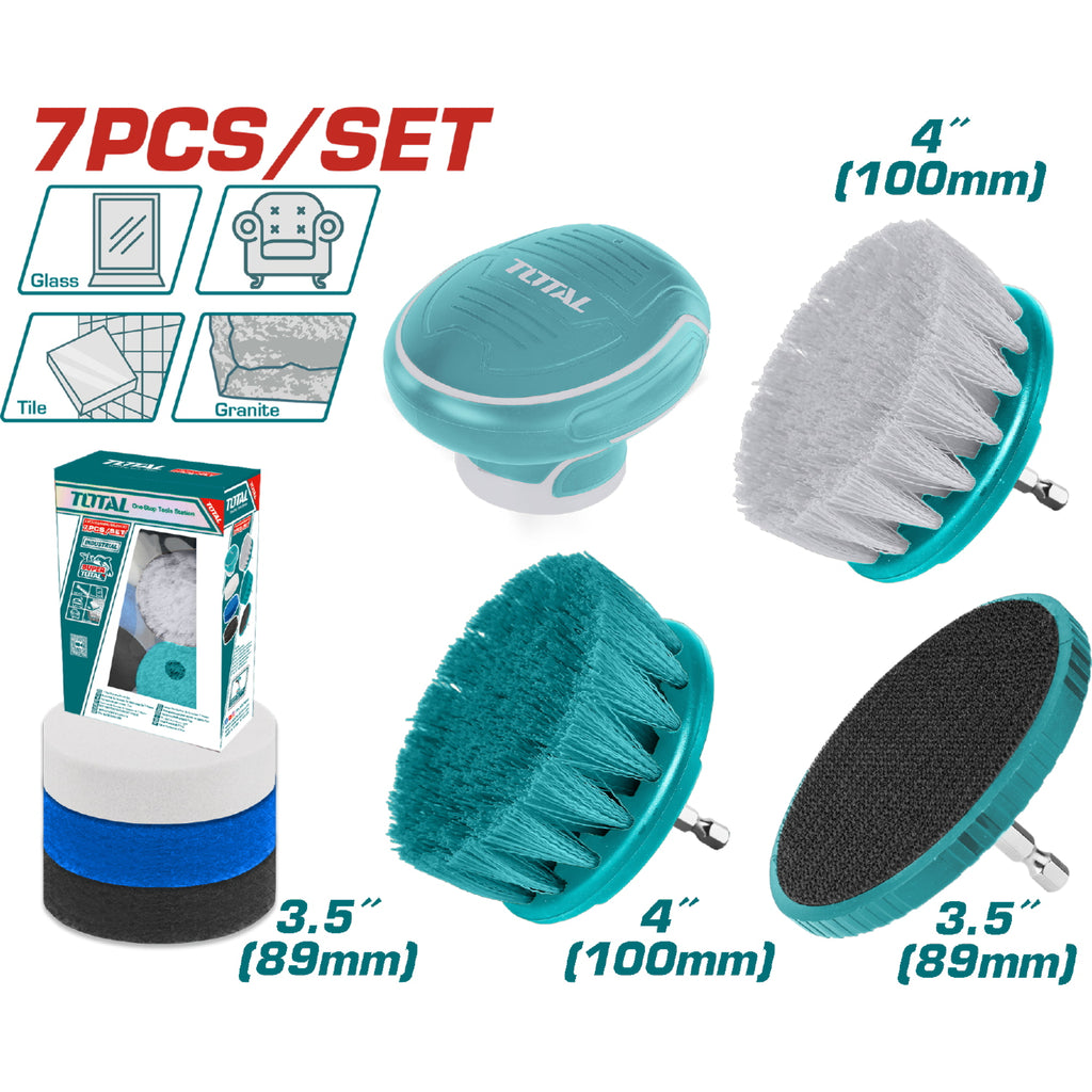 | Características | limpieza con accesorios. Incluye: Cepillos, almohadillas y soporte. Set de 7 piezas. |