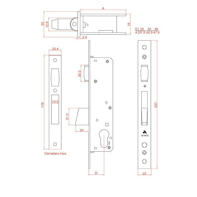 Cerradura de Rodillo y Palanca. Puerta Sistema Europa. Incluye Recibidor y Embellecedor cilindro