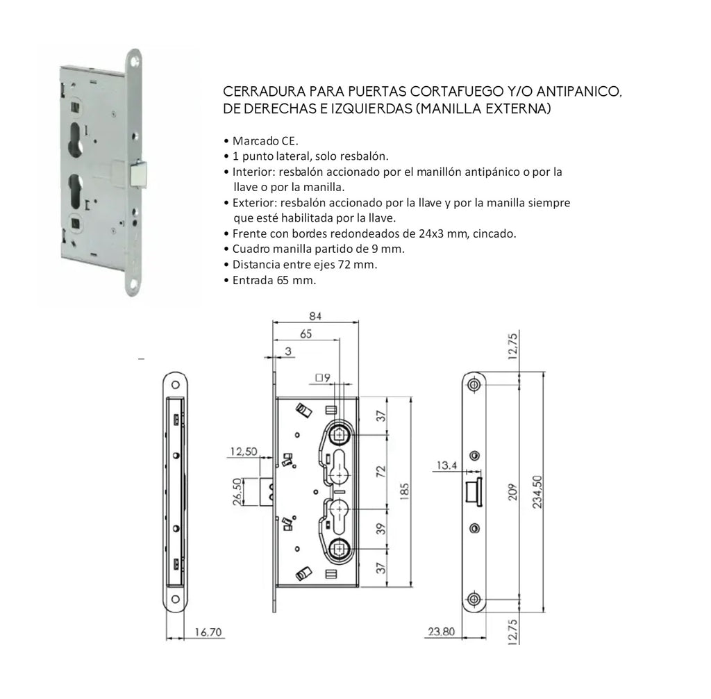 • Distancia entre ejes manilla–cilindro: 72mm.