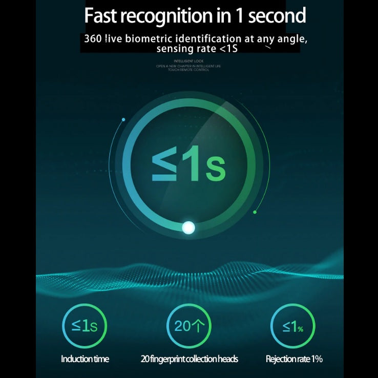 Esta cerradura puede registrar hasta 20 huellas dactilares. Cuenta con tecnología biométrica profesional de identificación rápida. Desbloqueo rápido de -0,5 segundos.