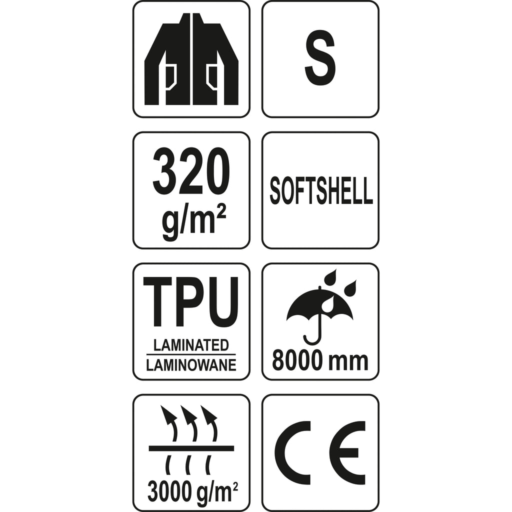 Líneas reflectantes en el área de flexión del codo; costuras individuales en el exterior.Puntos de sutura overlock en el interior.Puños ajustables con goma y velcro sujeción.Clasificación impermeable: 8000 mm.Transpirabilidad: 3000 mvp.