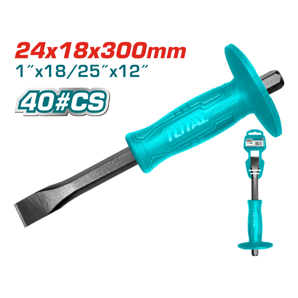 Cincel de 24 mm cabeza, mango 18 mm largo 300 mm. Alta calidad.