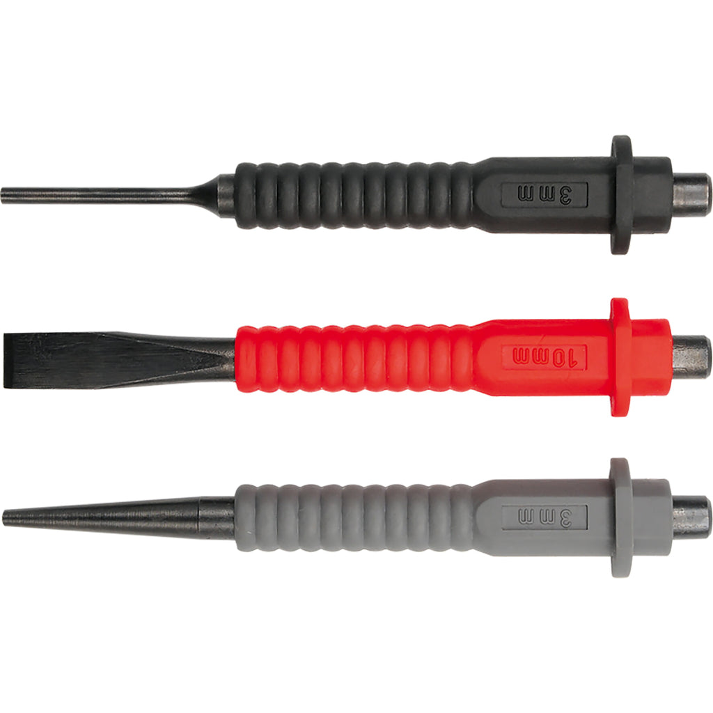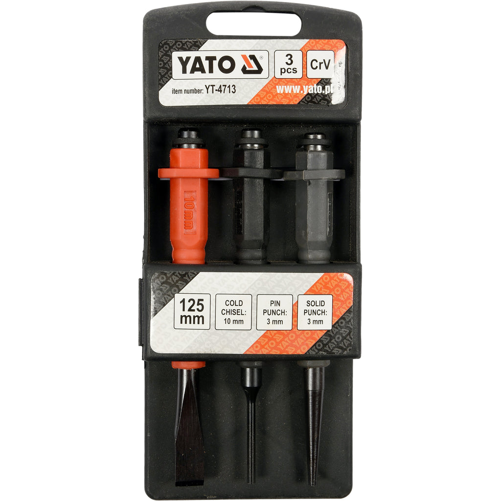 FRÍO 10MM, PIN PUNCH 3MM, SOLID PUNCH 3MM, CR-V, ACABADO NEGRO, LONGITUD TOTAL DE CADA PIEZA: 125MM; LOGOTIPO DE YATO Y SI ZE EN PERCHA, EMBALAJE: EN LA ETIQUETA SUPERIOR CON EL LOGOTIPO DE YATO, NÚMERO DE ARTÍCULO, PICTOGRAMA / EN CERRADURA: ETIQUETA CON TAMAÑOS