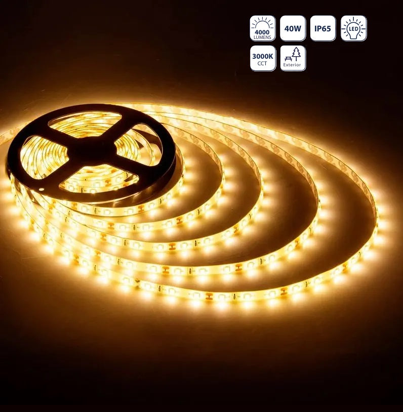 | *Nombre | Cinta LED Exterior 5M 110V 3000K Tono Cálido, 40W, 4000lm, Tira Flexible 2835, 120 Chips/m, PVC. Tira LED. |