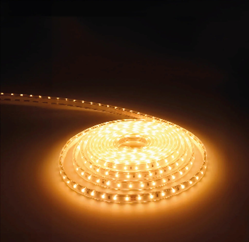 CINTA LED EXTERIOR 5M 110V 3000K La cinta LED, también conocida como tira LED o banda LED, es una forma flexible y versátil de iluminación que consta de una serie de diodos emisores de luz (LED) montados en una tira o cinta flexible.Está construida sobre una base flexible que permite doblar, enrollar o cortar la tira según sea necesario para adaptarse a diferentes formas y superficies. Posee una medida de 8*50000 milimetros con corte cada 1000 milimetros, material pvc,Tipo de chip 2835, posee 40 watts con una intedidad limunica de 4000 lumens de tono cálido. Voltaje 110-130V 50-60Hz . Cantidad de chips por metros es de 120 Chips. Uso exterior como interior