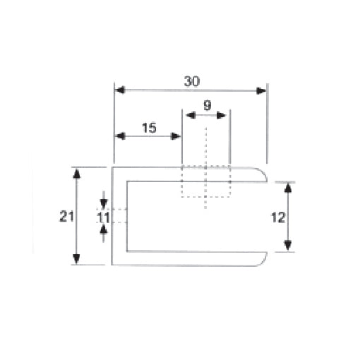 Clip chico corto para vidrios de 10-12 mm. Acabado Brillante (se vende por unidad)