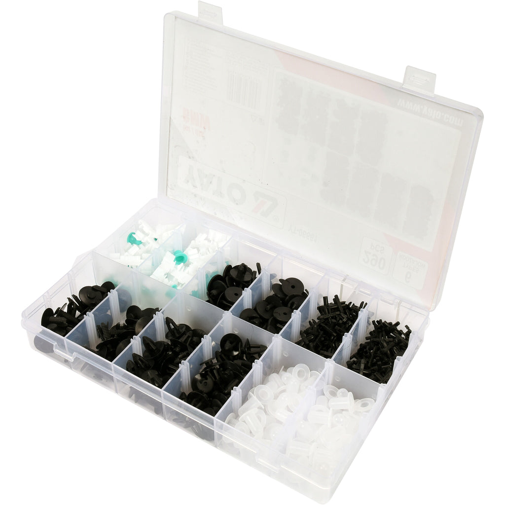 SURTIDO DE CLIPS DE RECORTE PARA BMW 290 PCS, CONTIENE: 10 PCS CLIPS FIJOS (151.1457), LOCALIZADOR DE 35 PCS (151.1597), SOPORTE DE PARABRISAS DE 70 PCS (151.1596), LOCALIZADOR DE 40 PCS (151.1612), 35 CLIPS DE PUERTA DE PCS (151.1968), 100 PCS TUERCAS (151.1011)