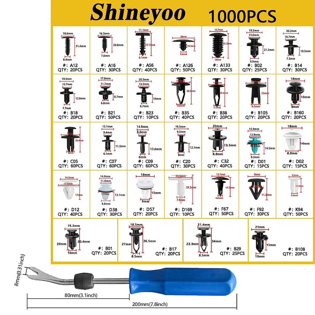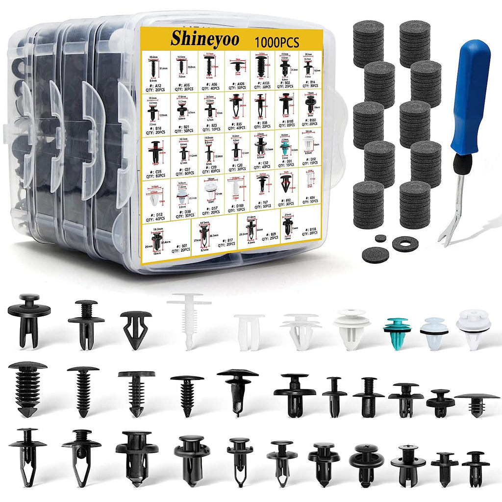 Clips de retención a presión autos, set de 1100 piezas con removedor, 32 tipos de clips.