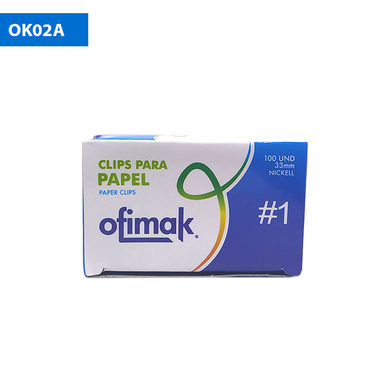 Clips para papel No. 1, caja de 100 unidades, marca Ofimak